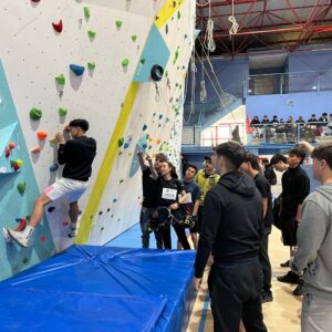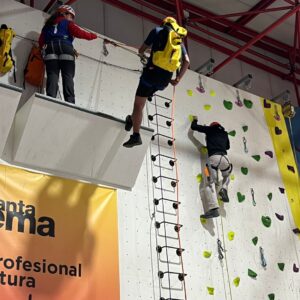 La primera jornada organizada por los alumnos del Colegio Santa Gema, puso a prueba las habilidades de escalada y técnicas de progresión en barranquismo que se llevaron a cabo en el rocódromo del centro. A continuación se enfrentaron a una completa gymkana por relevos que facilitó el compañerismo entre los equipos de ambos centros.
